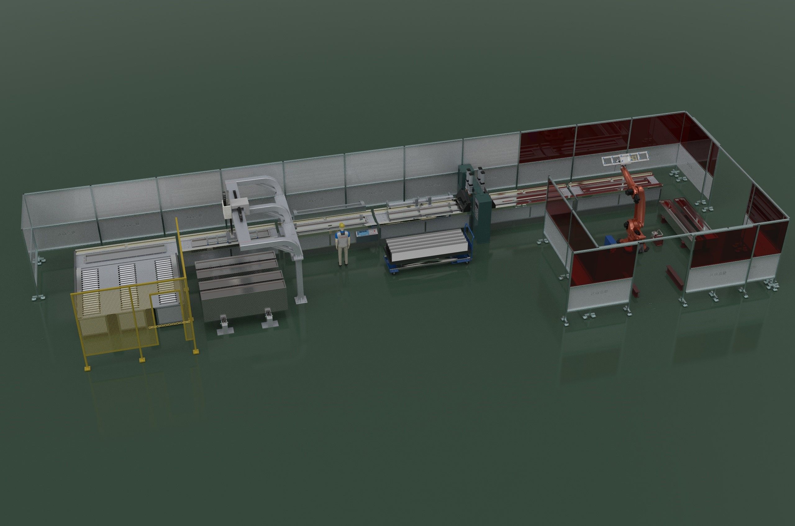 用途:本儀器用于碳鋼層門(mén)加強(qiáng)筋放置與焊接的自動(dòng)化裝配。電梯碳鋼層門(mén)裝配自動(dòng)化流水線(xiàn),客戶(hù)只需將生產(chǎn)任務(wù)單錄入流水線(xiàn)監(jiān)控設(shè)備,提供半成品,從流水線(xiàn)前端流入,流水線(xiàn)末端就能得到完整的總成,具體的流水線(xiàn)過(guò)程:半成品層門(mén)堆垛在一個(gè)指定位置,機(jī)器人自動(dòng)上下料,完成加強(qiáng)筋放置、連接(鉚接、焊接),送到成品區(qū),后面由機(jī)器人完成碼垛。該設(shè)備自動(dòng)連續(xù)完成上料加強(qiáng)筋放置鉚接焊接等作業(yè),取代人工操作,所需人手少(減少75%以上),裝配效率高(全部過(guò)程30秒以?xún)?nèi)完成),產(chǎn)成品質(zhì)量穩(wěn)定,節(jié)約大量人工成本,是廣大電梯制造行業(yè)完善質(zhì)量、提高生產(chǎn)效率、增強(qiáng)工作效益的裝備。