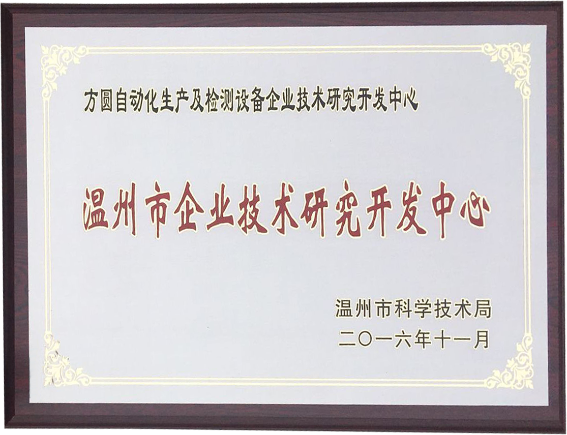 日前,溫州市科學(xué)技術(shù)局對(duì)我公司的研發(fā)中心進(jìn)行了審查、評(píng)估后,同意認(rèn)定我公司的方圓自動(dòng)化生產(chǎn)及檢測(cè)設(shè)備企業(yè)研究開發(fā)中心為市級(jí)研發(fā)中心。